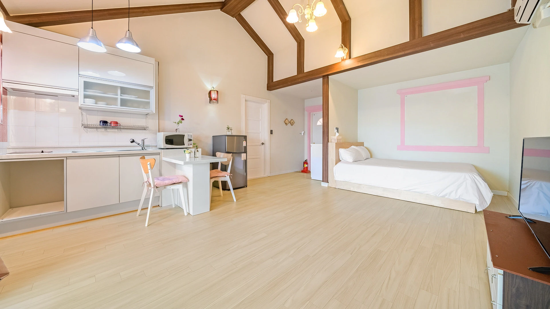 - 집기품목 : 전자레인지, 취사시설/도구, 커피포트, TV, 가스레인지, 개별바비큐, 냉장고, 드라이기, 린스, 바디워시, 샴푸, 에어컨, 와이파이, 전기밥솥, 금연, 욕실용품, VOD, 바다전망